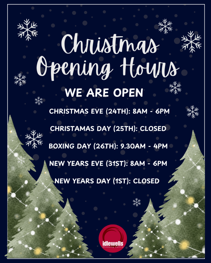 Plan your visits around our festive opening hours at Idlewells Shopping Centre.